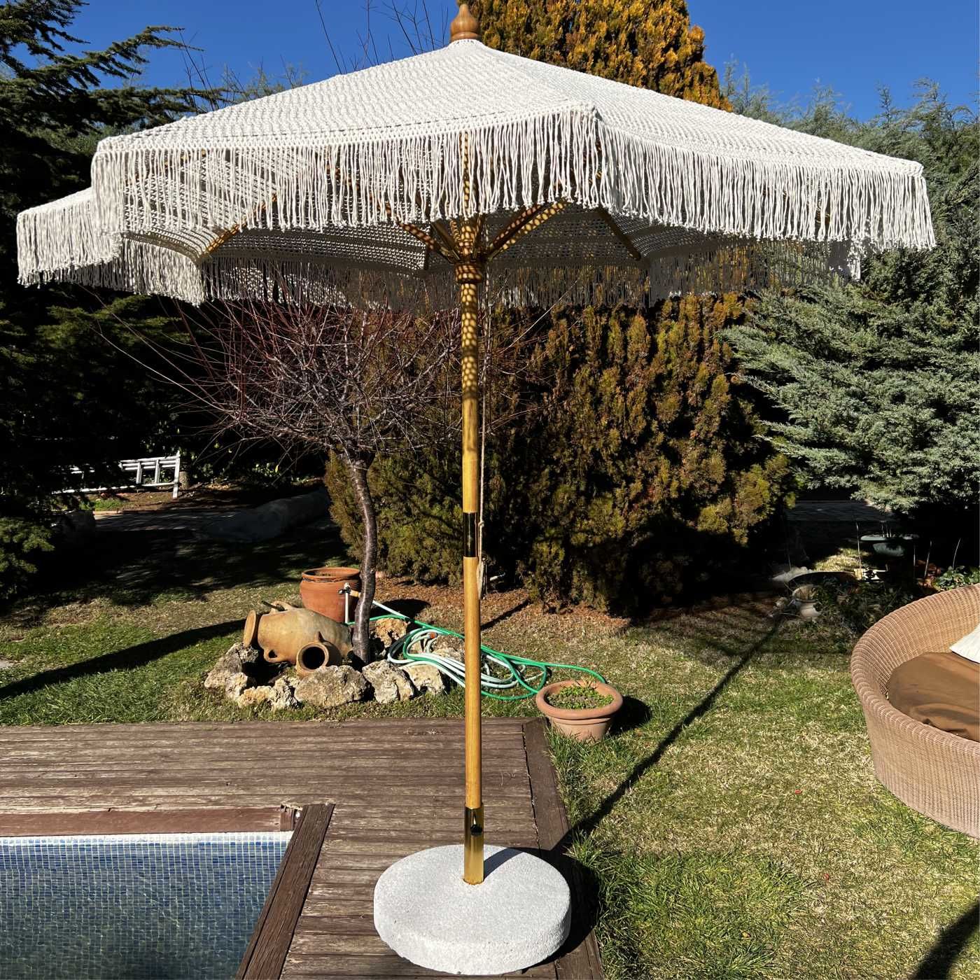 2.5 Mt Ahşap Makrome Bahçe Şemsiyesi
