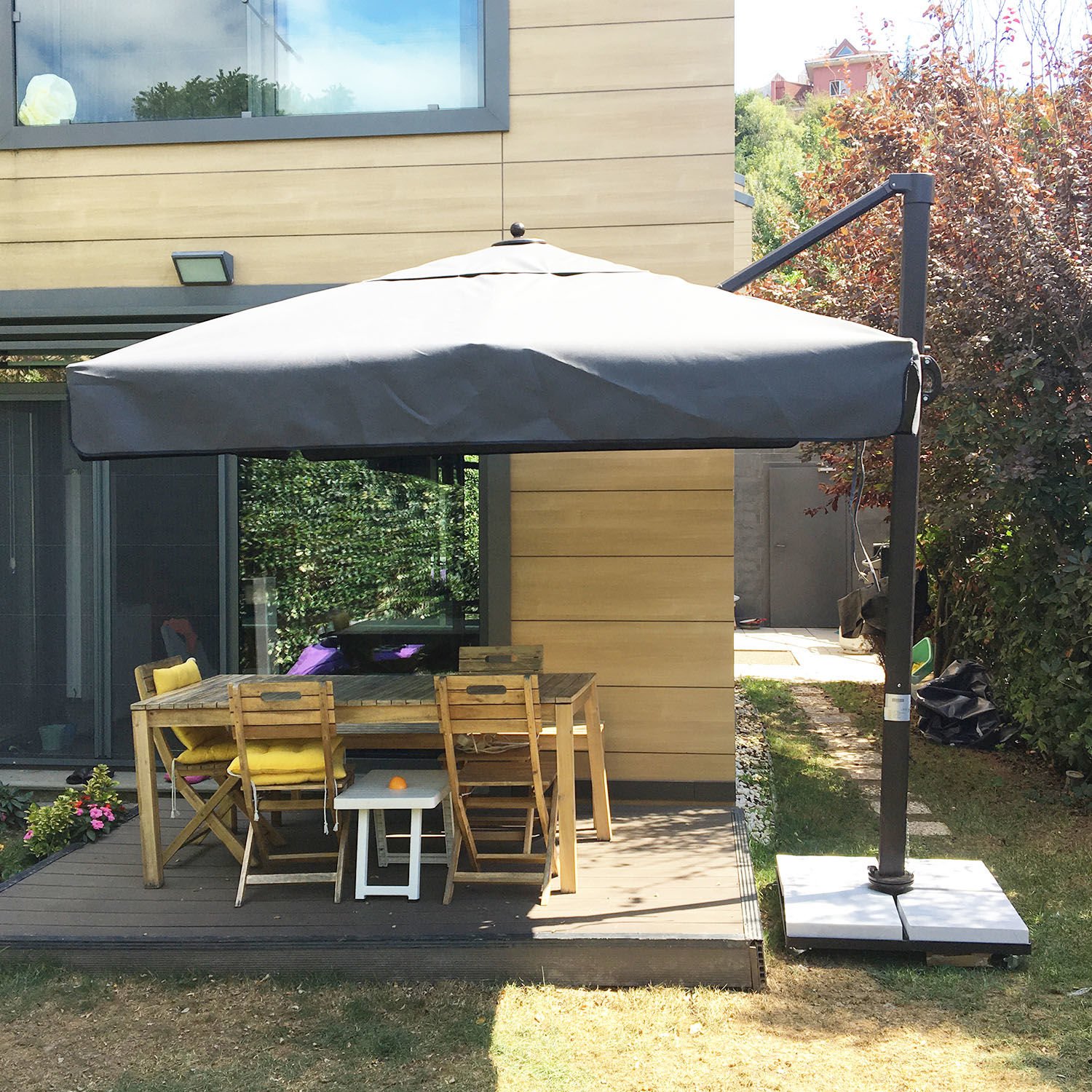 Gövdesi yanda gölgesi ortada olan yandan gövdeli saçaksız bahçe şemsiyesi!