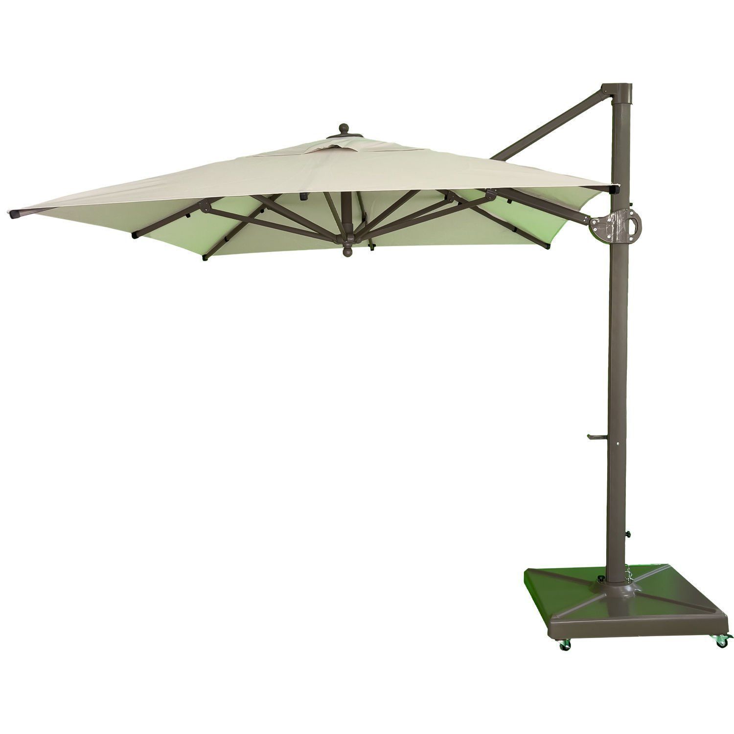 Gövdesi yanda gölgesi ortada olan yandan gövdeli saçaksız bahçe şemsiyesi!