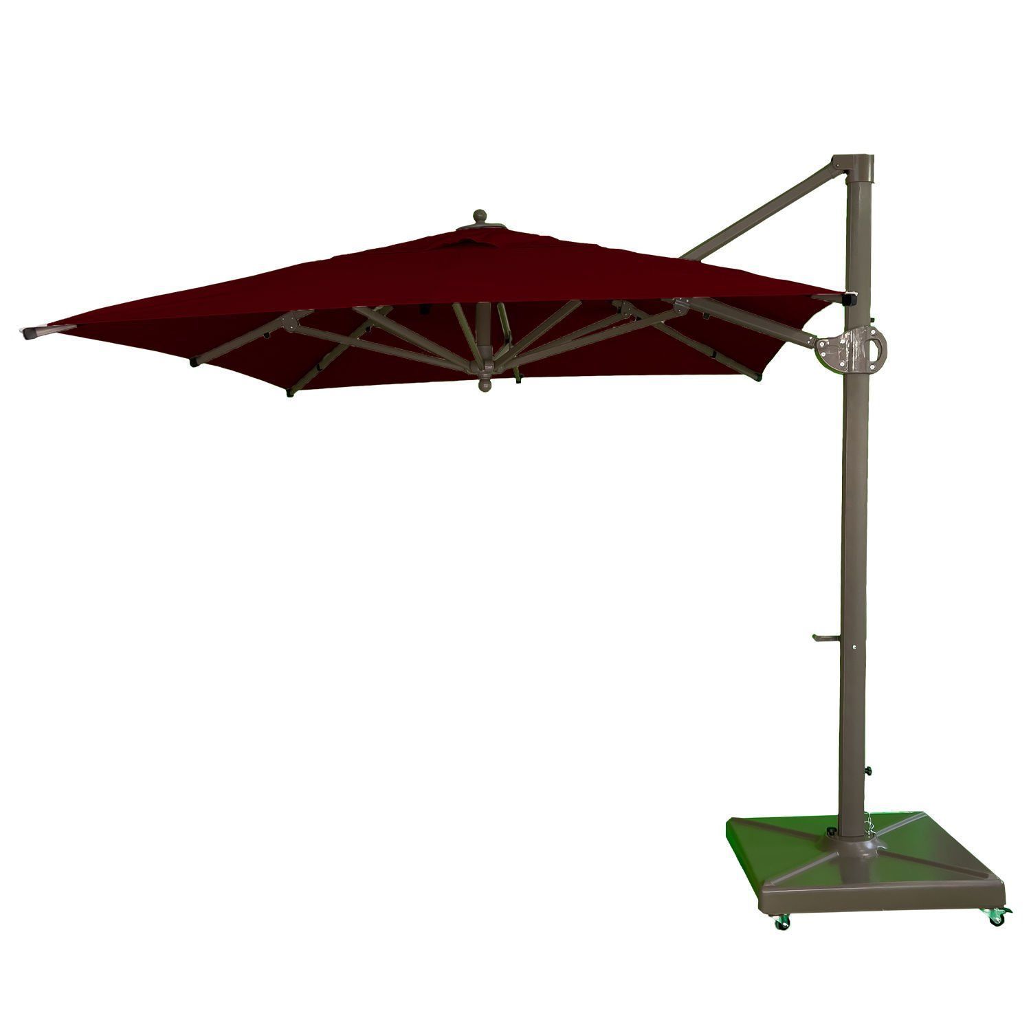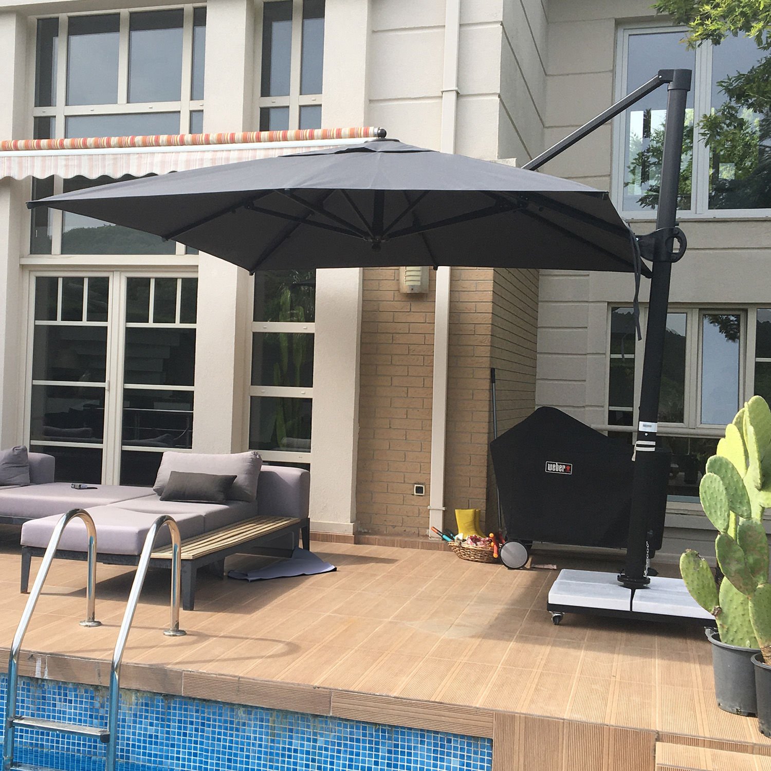 Gövdesi yanda gölgesi ortada olan yandan gövdeli saçaksız bahçe şemsiyesi!