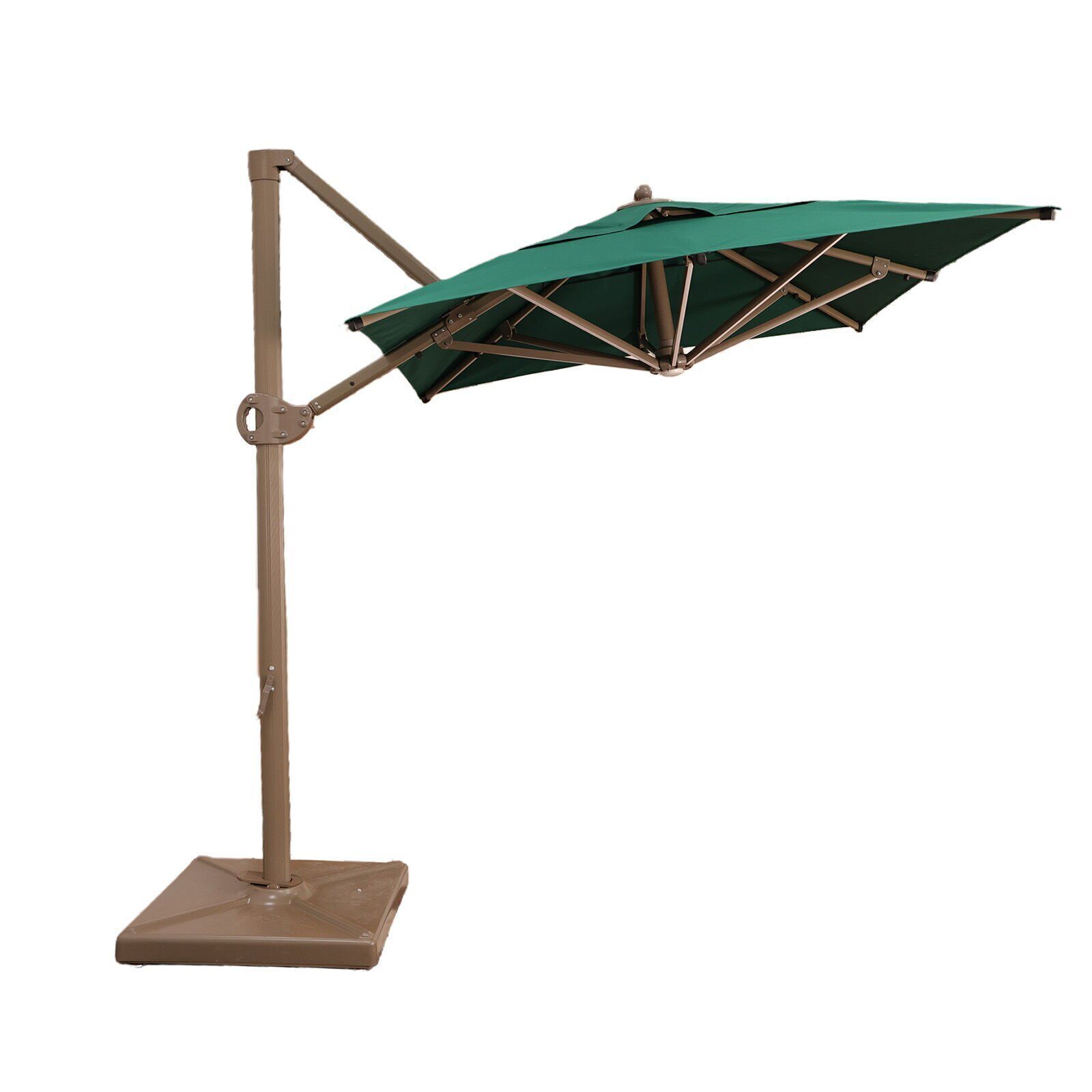Gövdesi yanda gölgesi ortada olan yandan gövdeli saçaksız bahçe şemsiyesi!