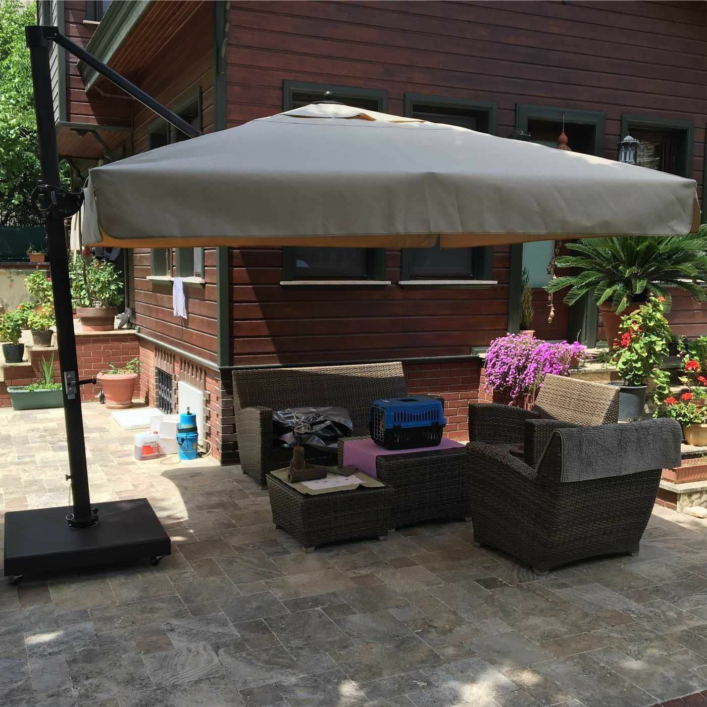 Gövdesi yanda gölgesi ortada olan yandan gövdeli bahçe şemsiyesi!